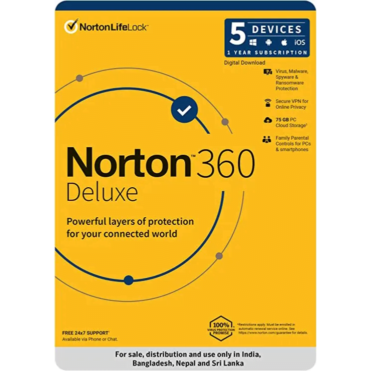 Tags: 1 year, 5 device, 5 pc, 5 user, Email delivery, iOS, Mac, Norton 360 Deluxe, windows